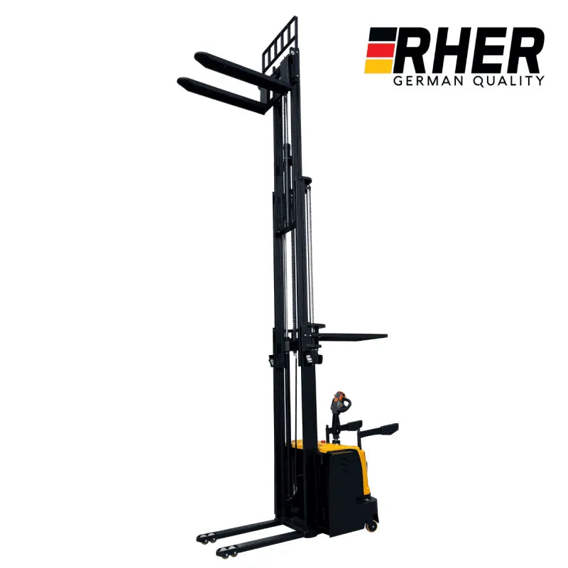 2000 Kgs / 3.5 Metros. Apilador Rher Full Eléctrico hombre a Bordo Base Angosta